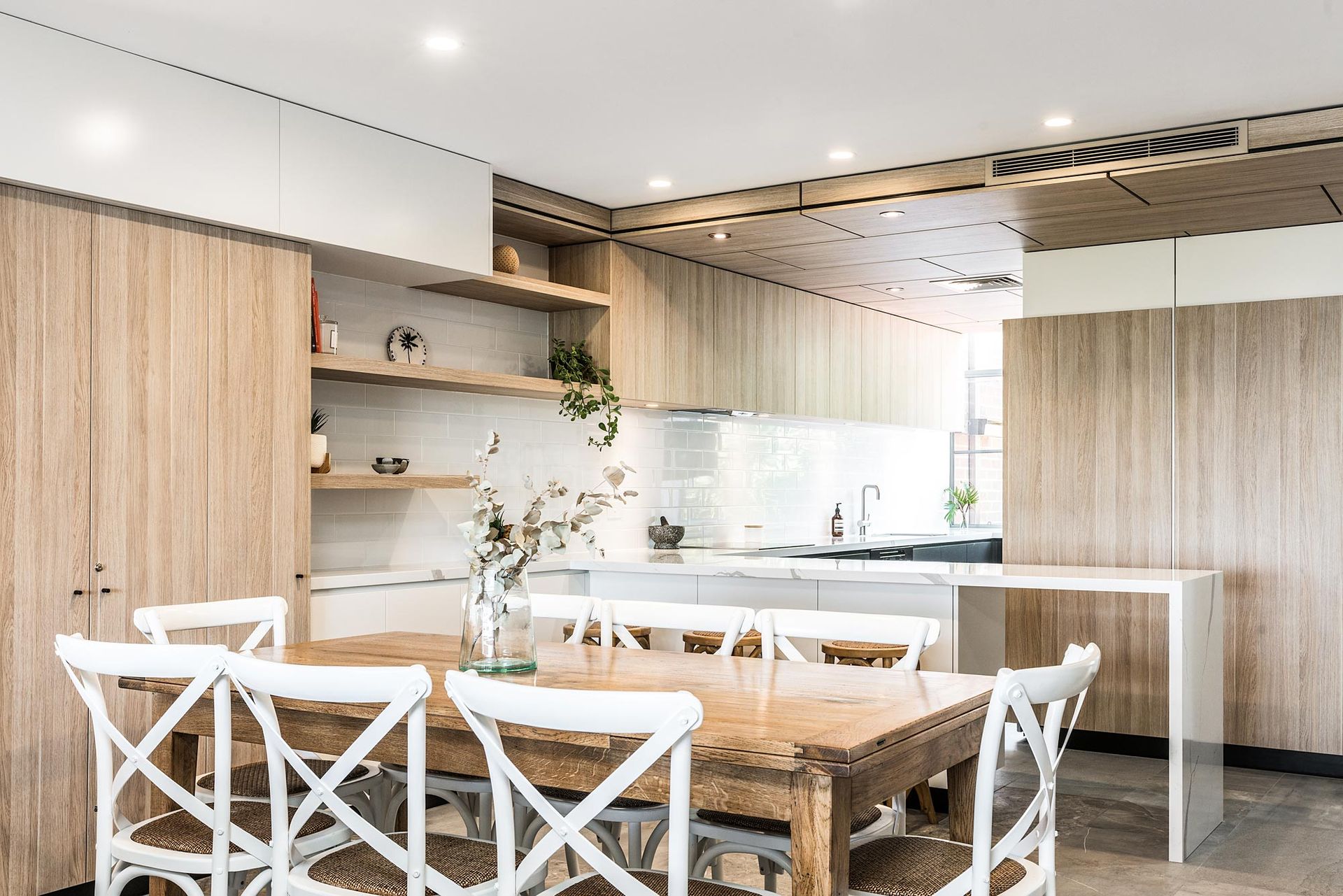 Creating family meals is effortless in the newly renovated, stylishly appointed kitchen. Featuring sleek contemporary finishes, premium stainless steel appliances, immaculate countertops, and abundant storage, all complemented by garden views from the striking greenhouse-style picture window. Children can perch on stools at the elegant breakfast bar, while adults might enjoy a relaxing morning coffee in this inviting space. The kitchen flows seamlessly into a dedicated dining zone featuring a generous farmhouse-style table seating 8 guests.