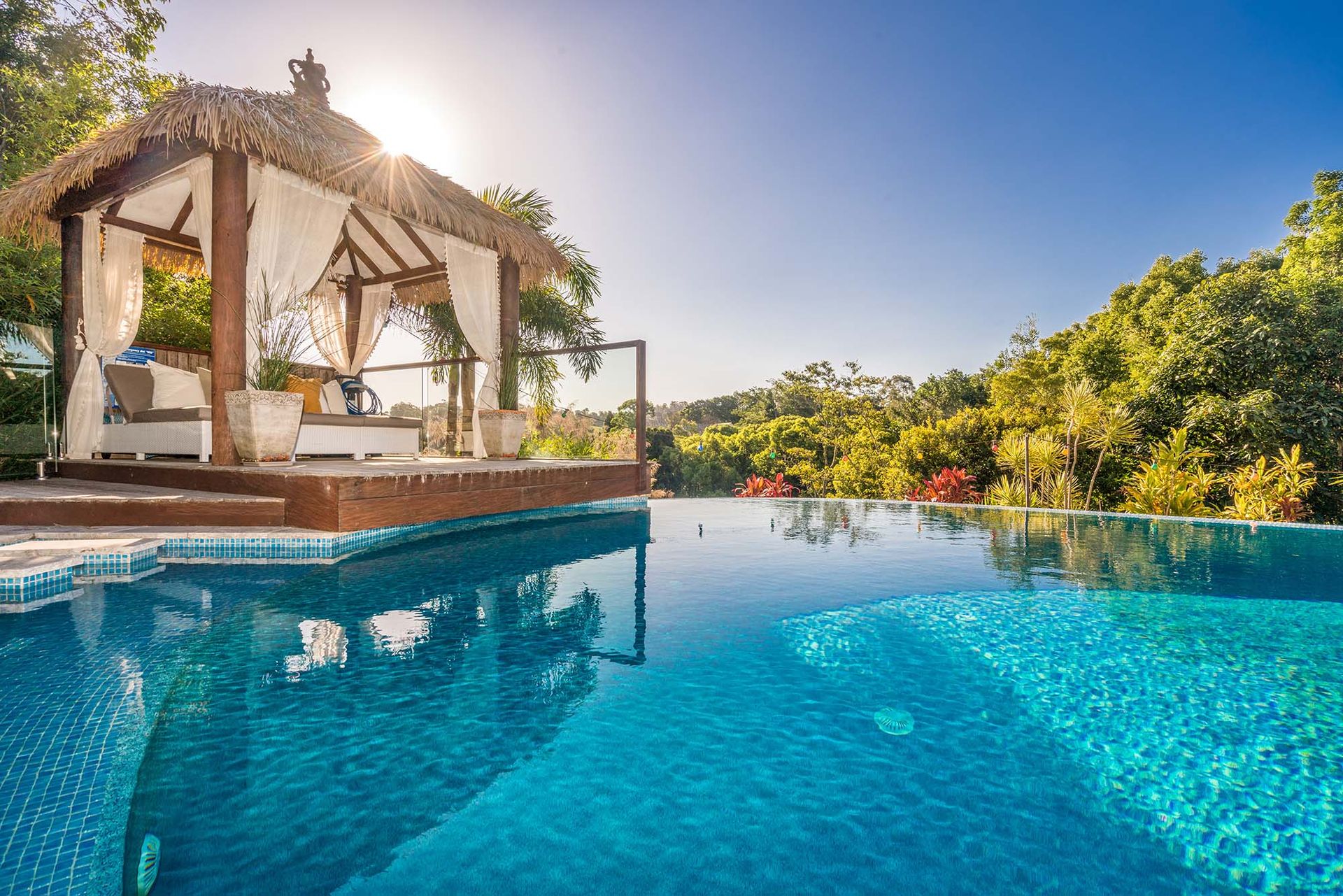 - Infinity pool (unheated) and heated spa with sweeping valley views