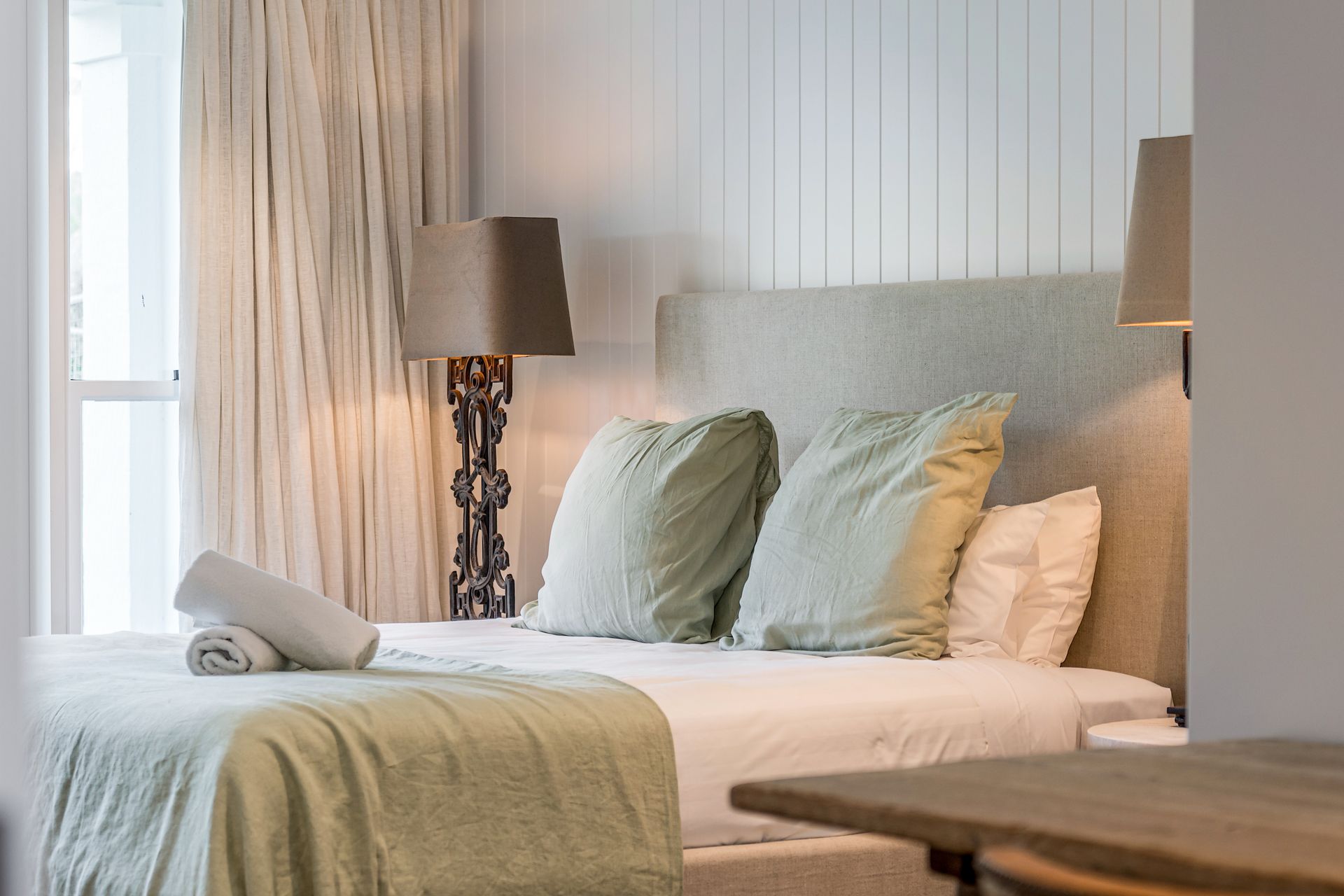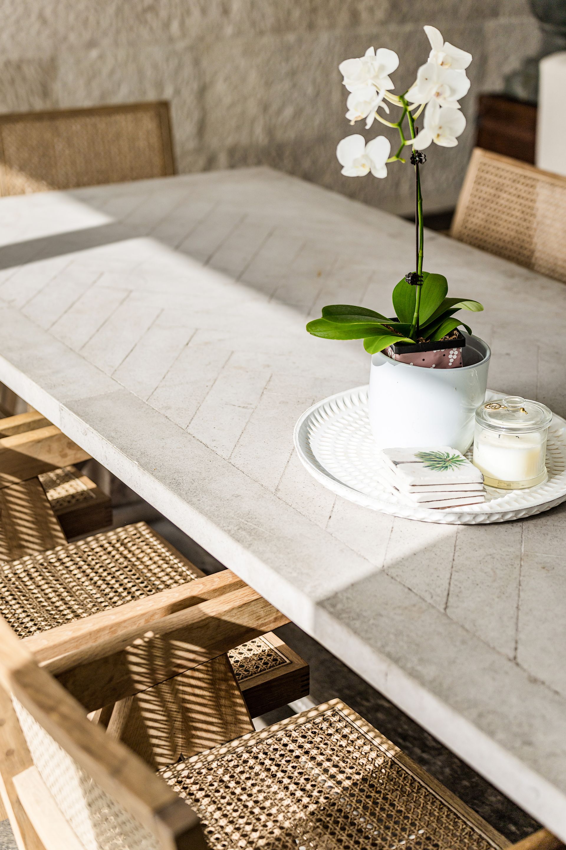• Sophisticated and stylish interior with lots of organic textures including limestone and wood floors, linen and sandstone walls
