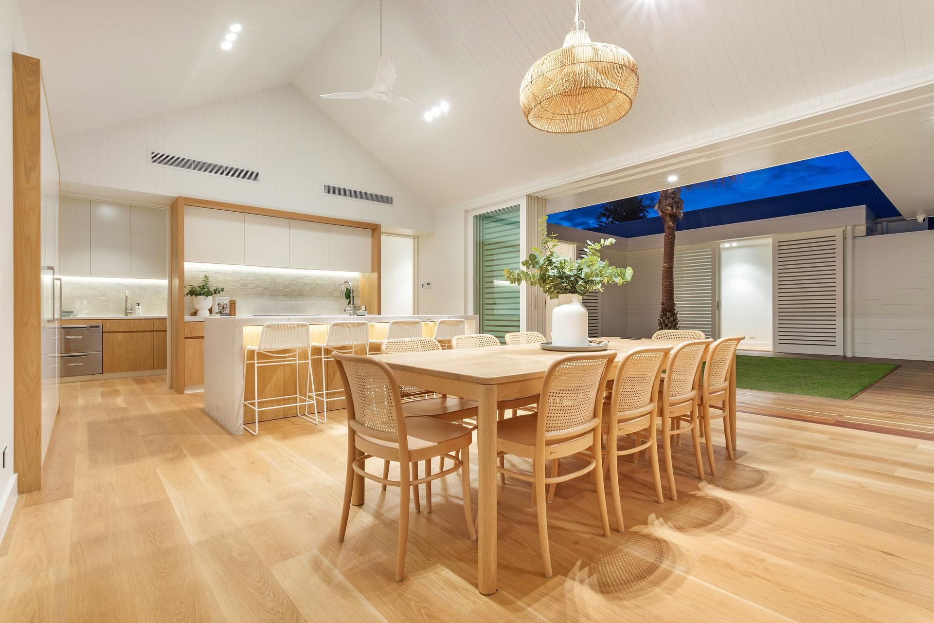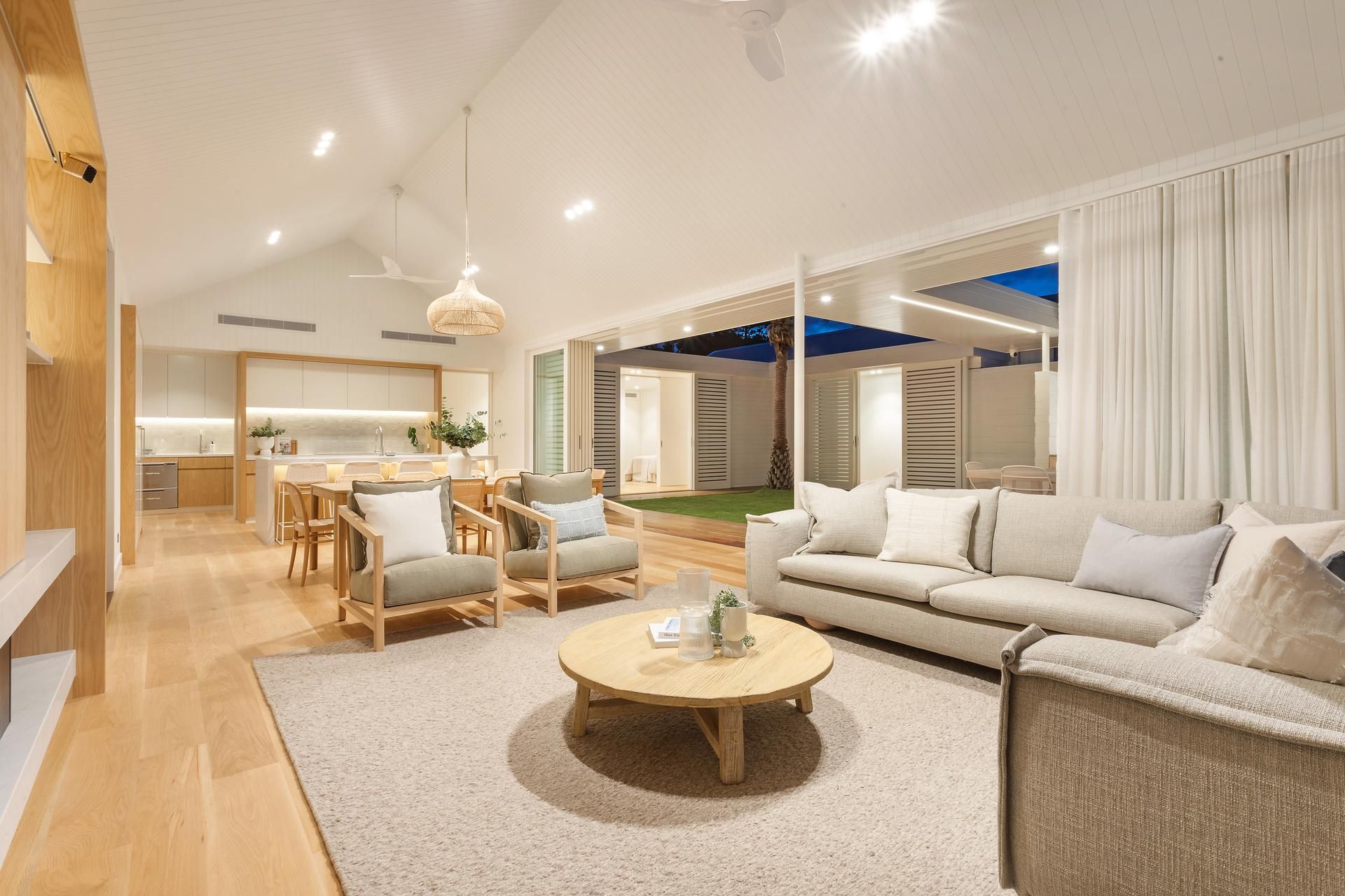 Inside reveals a contemporary open-plan layout with soaring ceilings and a premium island kitchen that connects seamlessly with the outdoor entertainment zone. Among the 4 bedrooms, 3 boast private ensuites, making this retreat ideal for multiple families or larger groups seeking a weekend escape or extended holiday.