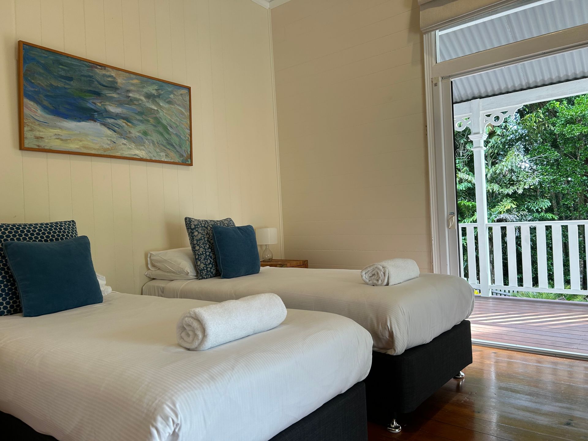 - Queenslander house: 3 bedrooms, 3 bathrooms (accommodates up to 6 guests)