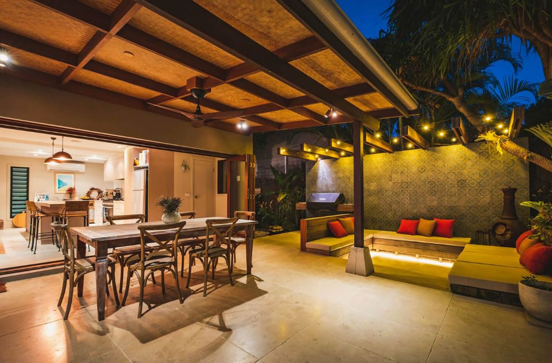 The in-ground solar heated pool is surrounded by landscaped tropical gardens with an outdoor hot/cold shower. It also provides an enticing entertaining area that includes a Moroccan inspired lounge area with a large BBQ.