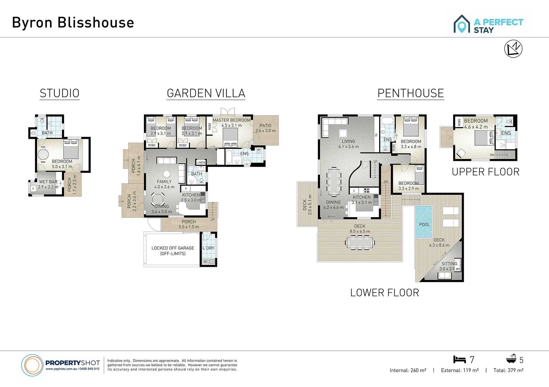 Discover Byron Blisshouse, offering multiple luxury accommodation options directly across from the pristine sands of Belongil Beach. Perfect for extended families and friend groups seeking togetherness while enjoying personal space. When booking Byron Blisshouse, you'll have exclusive use of the entire complex including the Penthouse, Studio, and Garden Villa.