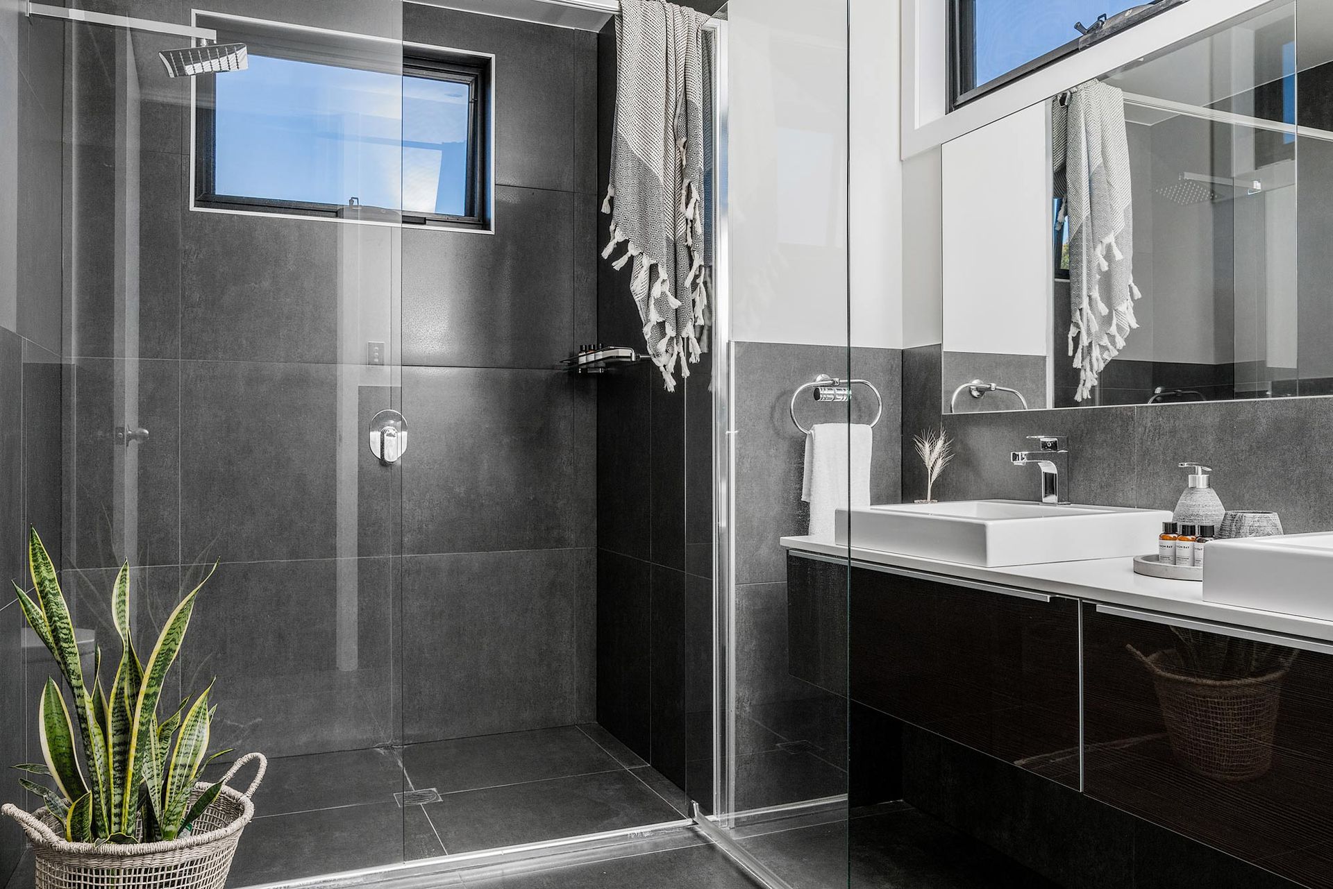 The thoughtfully designed master bedroom exemplifies flexibility, offering configurations to suit various group dynamics. Initially set up with a king bed and 2 singles, it can transform into 2 king beds or 4 singles – ideal for families or friend groups. Each bedroom features reverse cycle air conditioning for personalized comfort, with the master also including a Smart TV and luxury ensuite. Two additional queen bedrooms complete the upper level, both featuring plush carpeting, ceiling fans, abundant natural light, and premium linens. All share access to a second well-appointed bathroom.