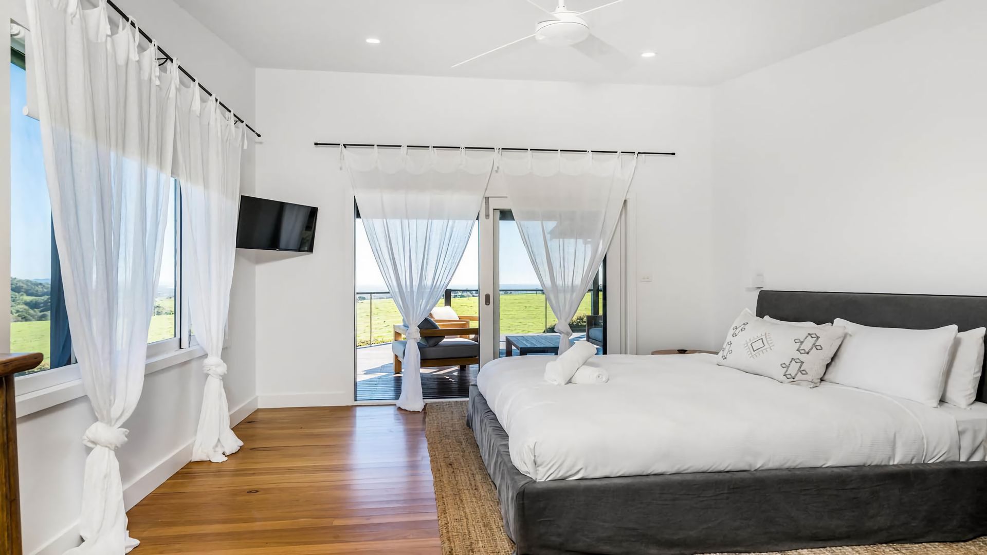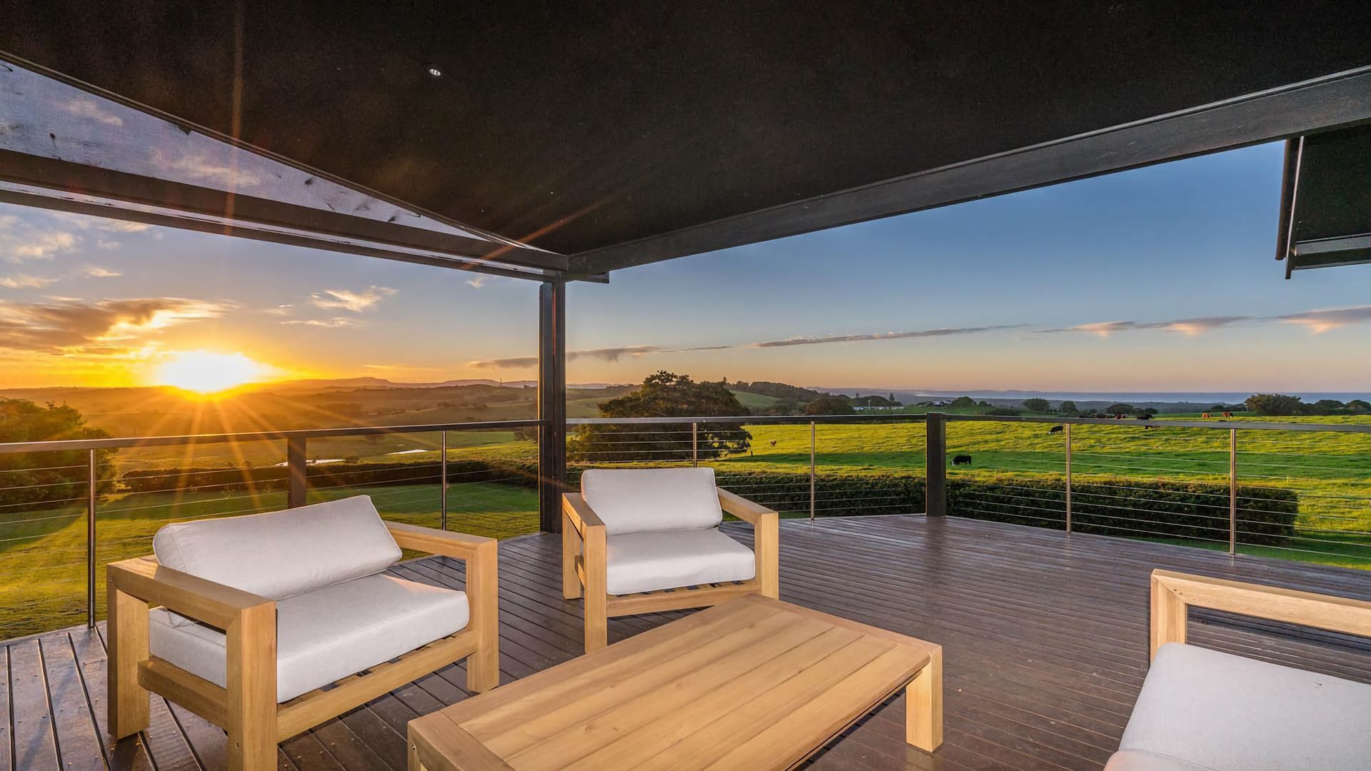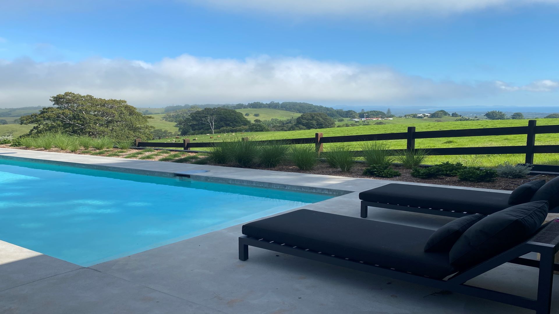 Experience a canvas of pastels from sunrise to sunset at Iluka, boasting magnificent north and west-facing views. Watch whales breach in the distance or entertain guests on the expansive wraparound deck. Enjoy morning laps in the 14m pool with only peaceful grazing cows dotting the horizon as your audience.