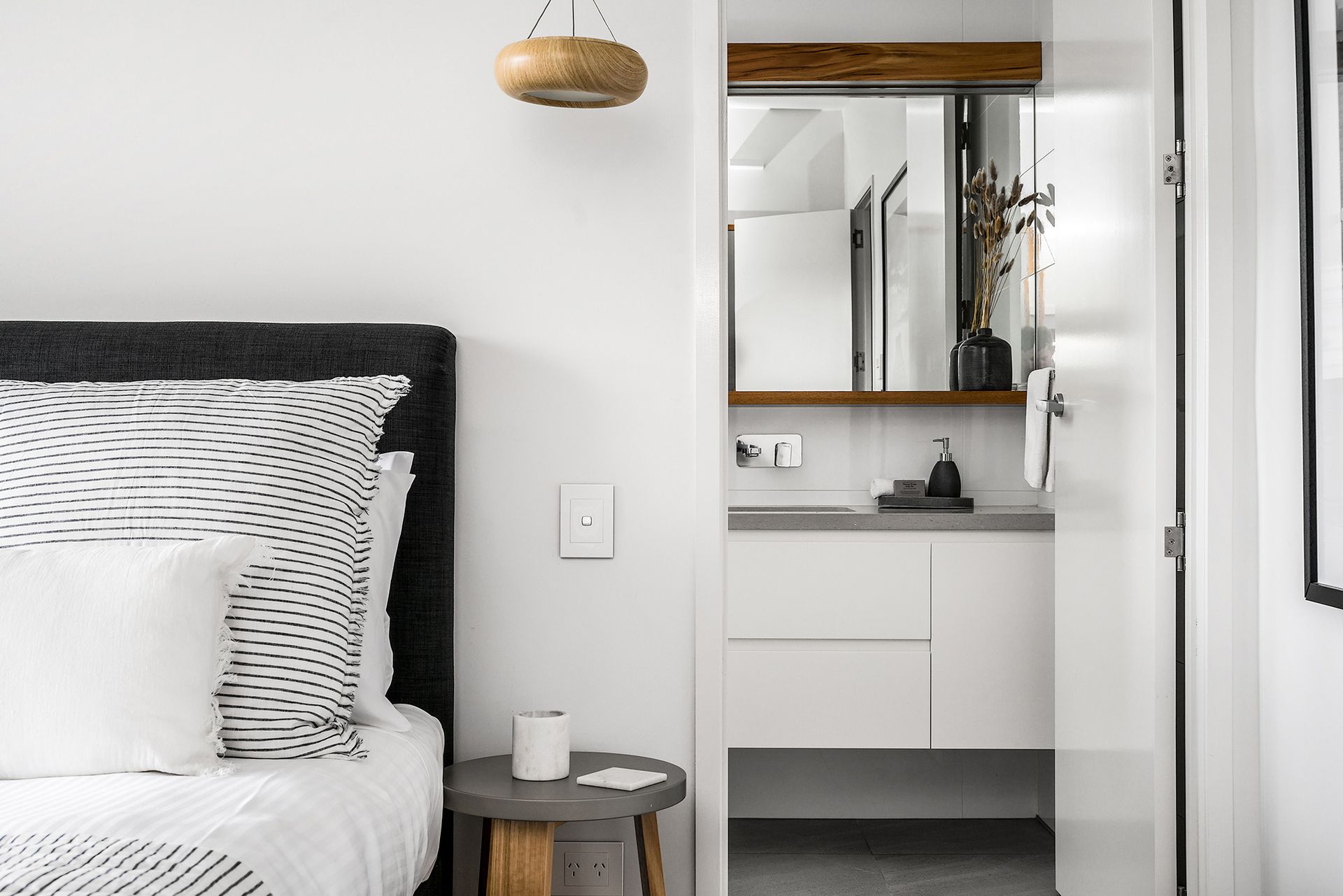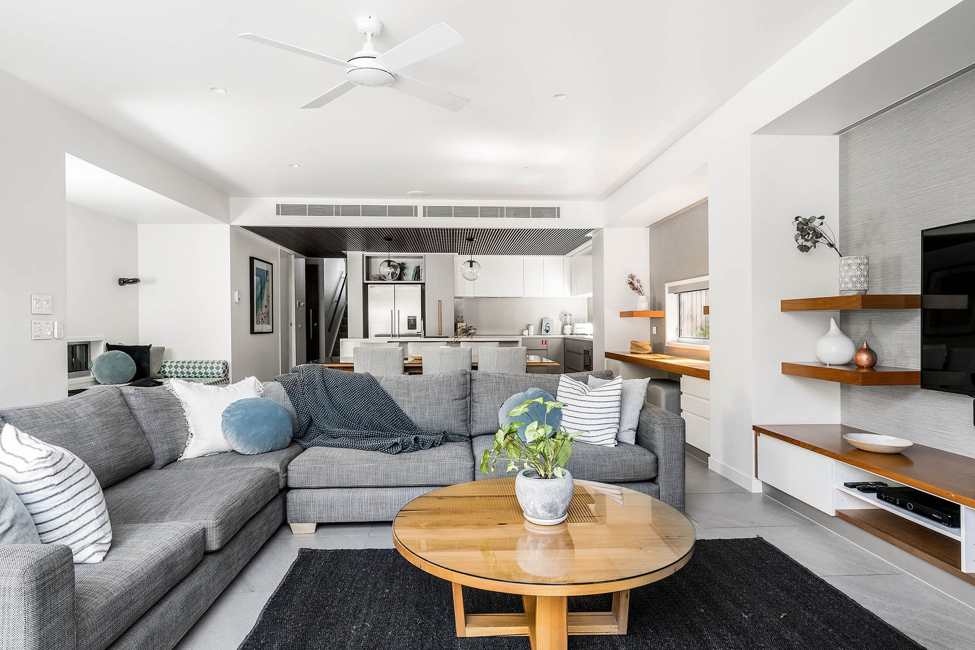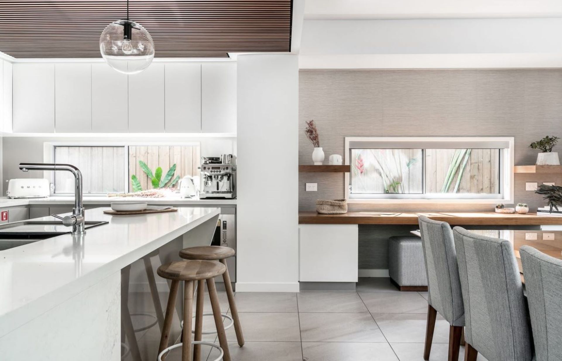 Step inside to discover contemporary coastal elegance featuring a harmonious timber, white and grey palette, accented with vibrant splashes of colour for that perfect luxurious beachside ambiance.