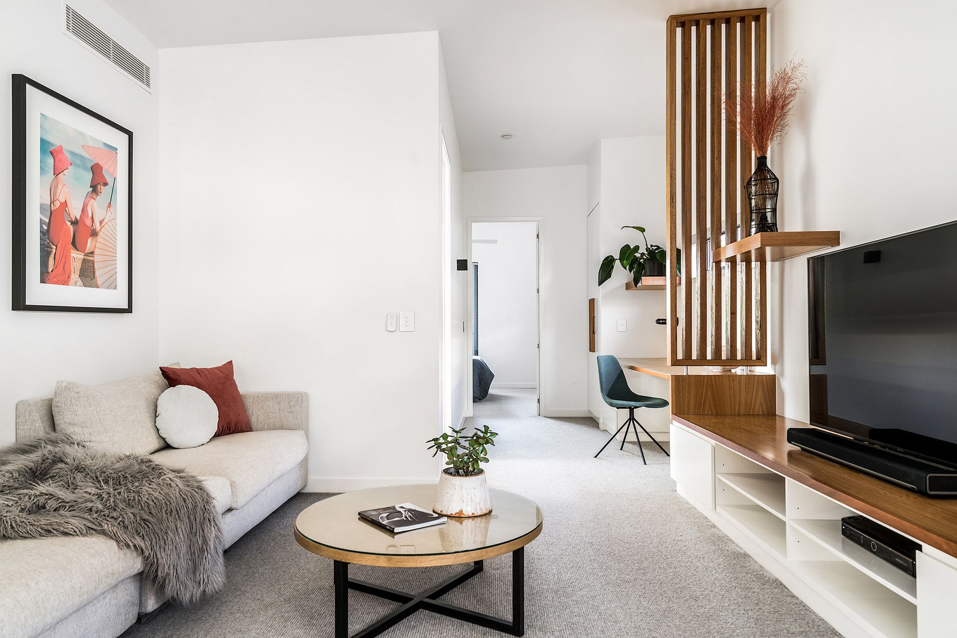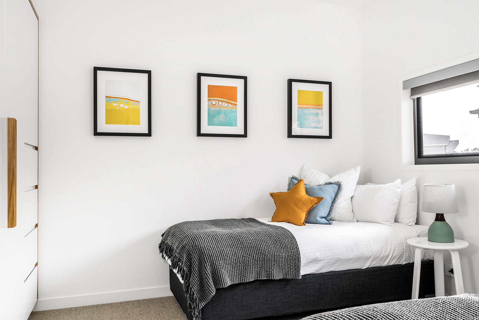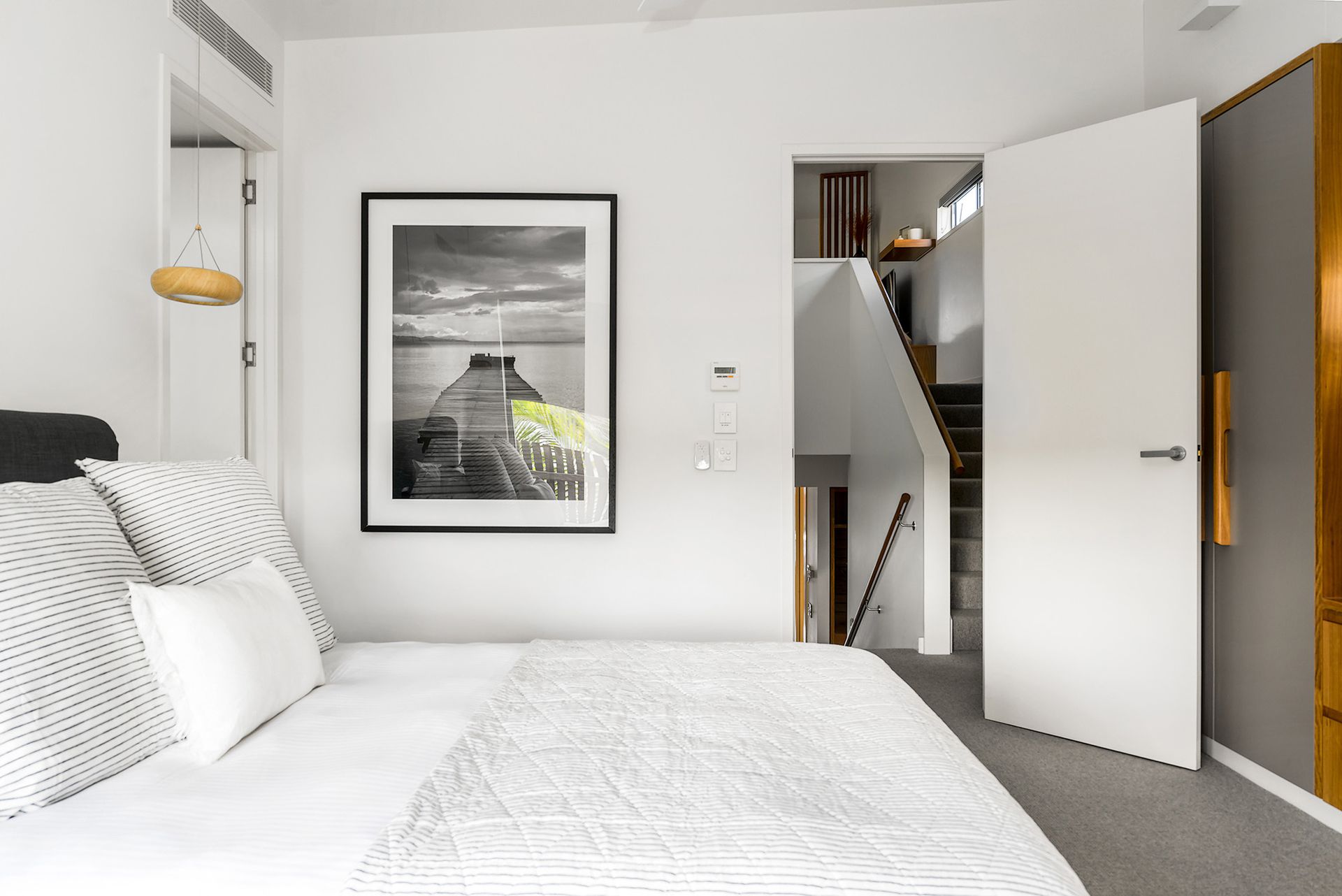 Step inside to discover contemporary coastal elegance featuring a harmonious timber, white and grey palette, accented with vibrant splashes of colour for that perfect luxurious beachside ambiance.