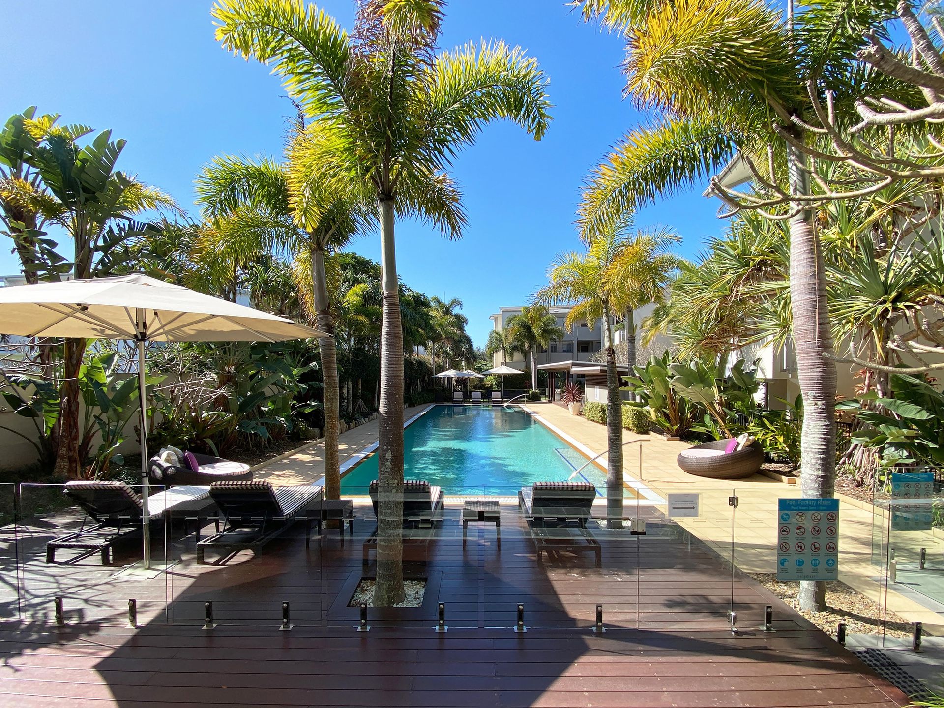 Resort facilities include a magnificent swimming pool with heated spa, poolside loungers, and welcoming terrace area. Secure underground parking with direct lift access via electronic key ensures convenience and security throughout your stay.