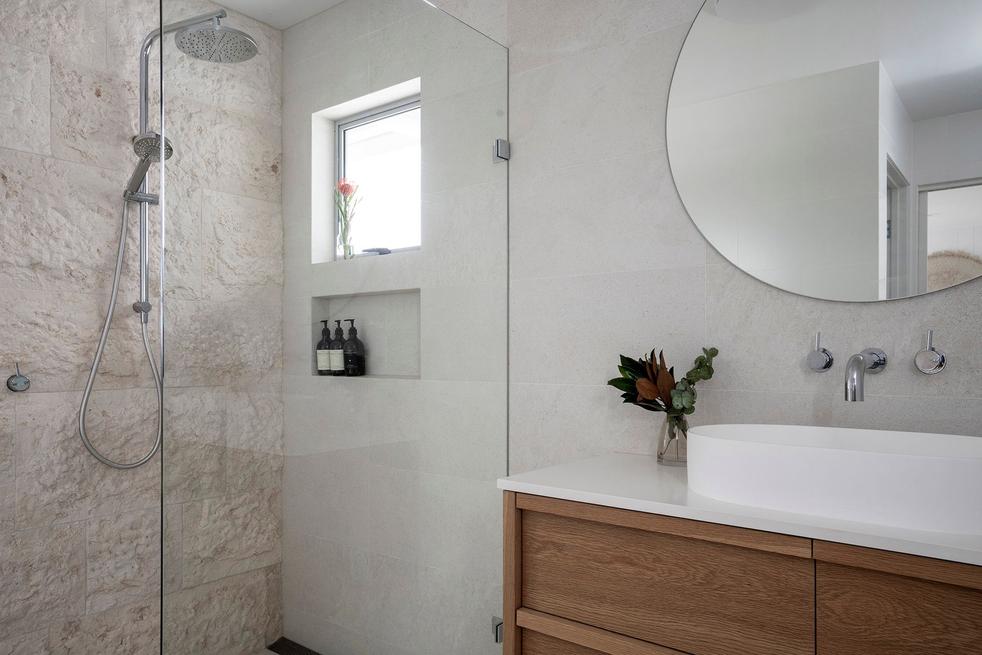 Bathroom 3 (shared ensuite from bedrooms 5 and 6): rain shower, single vanity, separate toilet