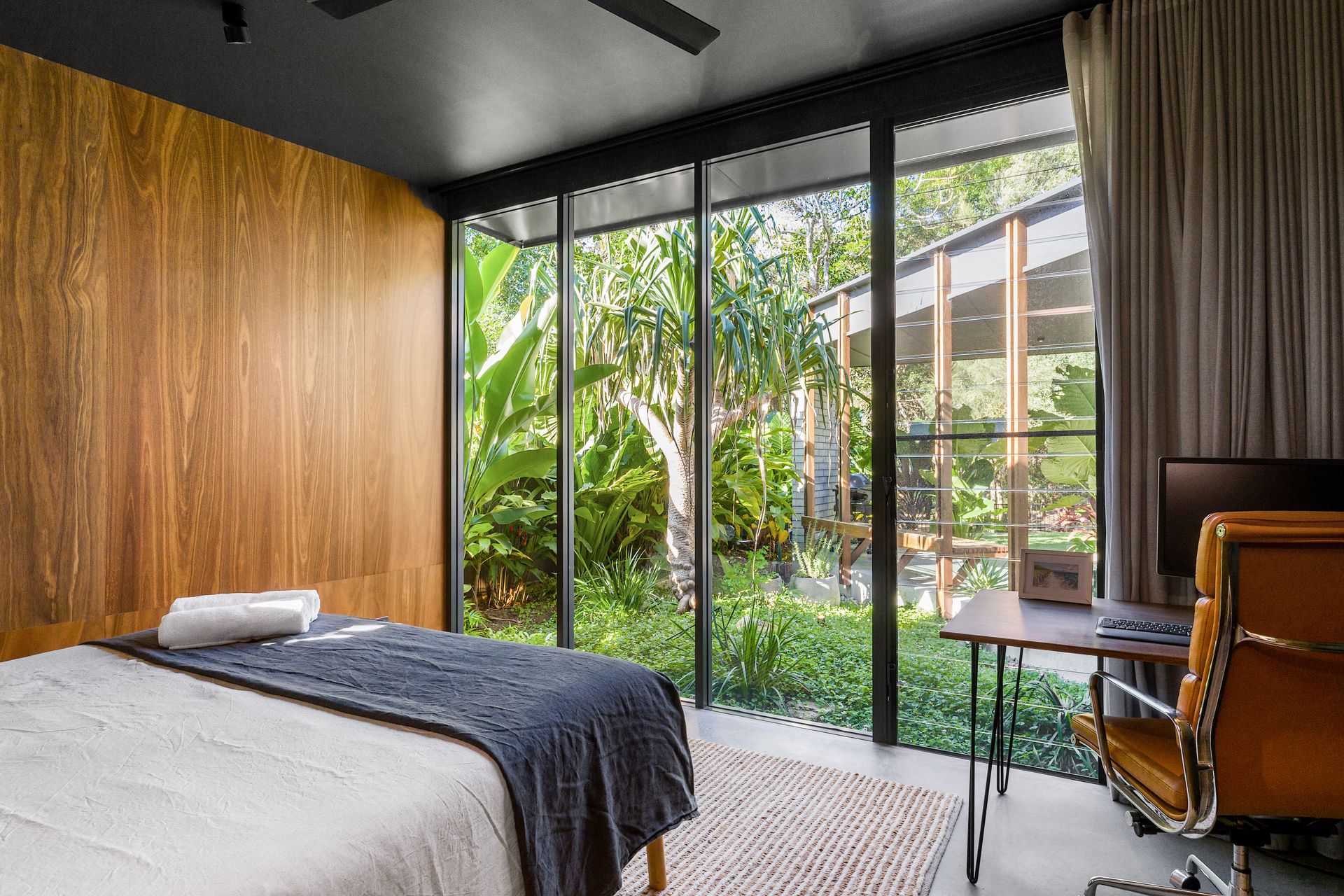 Surrounded by a peaceful haven of lush greenery and gently swaying palms, this architecturally crafted 3-bedroom, 2-bathroom escape offers the ultimate blend of refined design and rainforest tranquillity. For those who crave privacy, nature, and effortless style — this is your dream stay. Wake up to the rustle of palm trees and sunlight streaming through floor-to-ceiling glass. Each room captures vibrant, green vistas. Warm timber interiors bring an earthy calm, while the open-plan design erases the boundary between inside and out — in the dreamiest way possible. Three serene bedrooms each look out to the surrounding greenery — morning coffee in bed just got an upgrade. With natural textures, soft linens and thoughtful styling, these sleep spaces are pure sanctuary. Two beautifully appointed bathrooms offer clean lines, leafy views and a sense of calm — like your own private day spa.