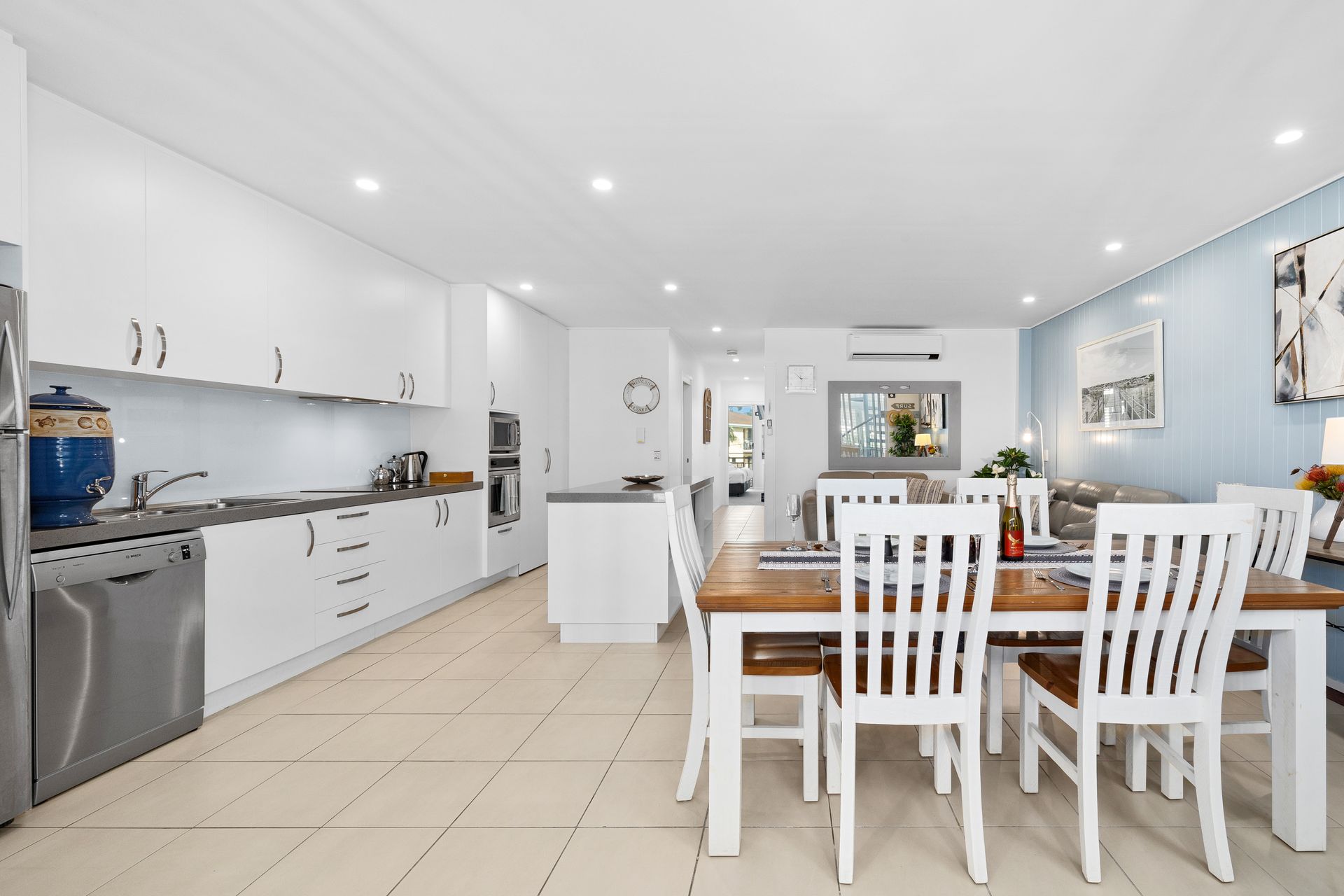 Your exclusive rooftop sanctuary awaits via a private internal stairway, where panoramic views across Kingscliff create a spectacular backdrop for outdoor entertaining. Begin your day with sunrise breakfasts overlooking the coastline or conclude perfect holiday evenings with starlit alfresco dining.