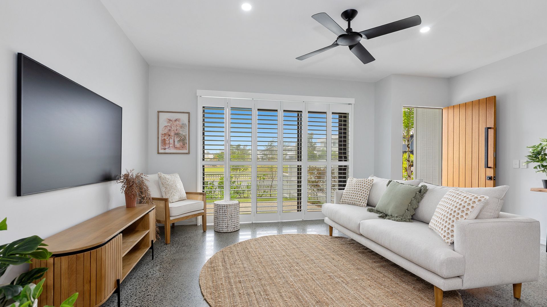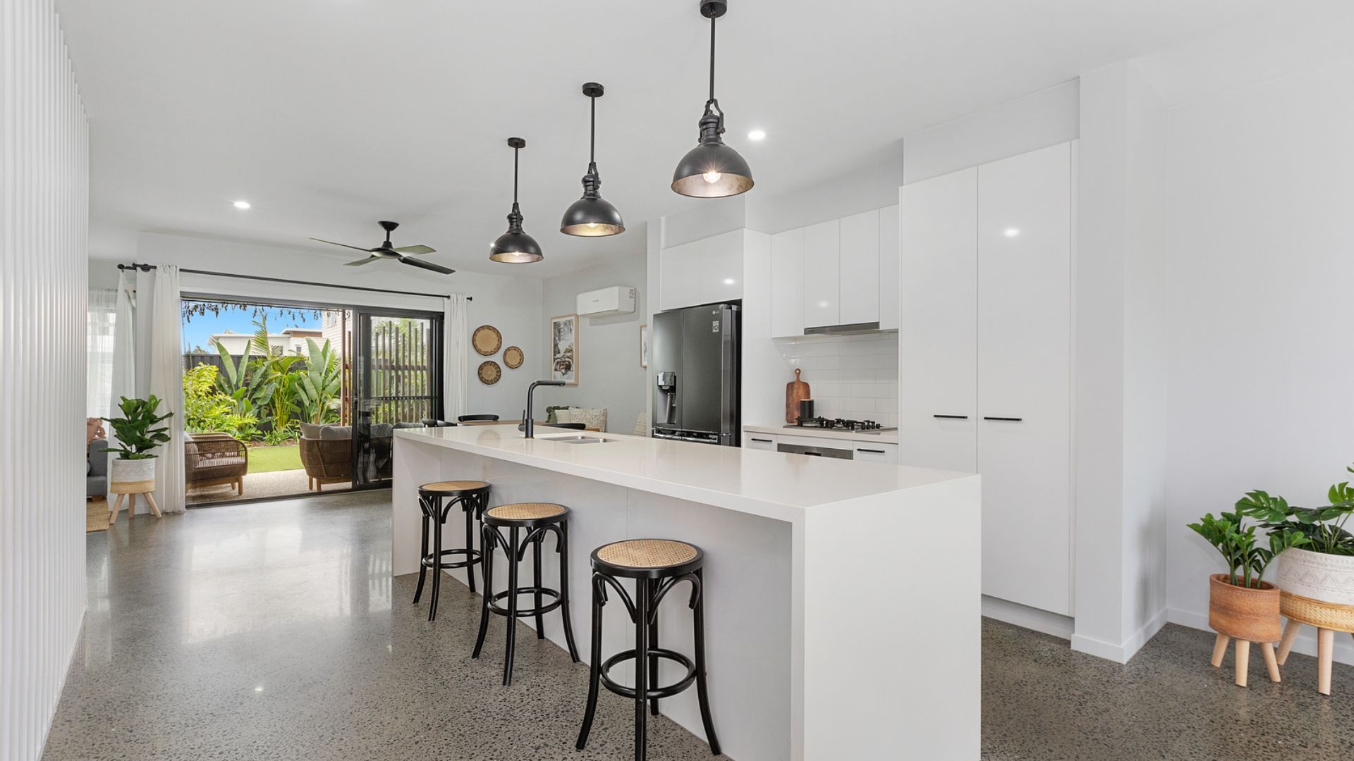 Perfectly positioned in the family-friendly 'Seaside City' enclave of Kingscliff, this spacious and stylish two-storey home is just a short 250m stroll from the stunning shores of Salt Beach and directly opposite a peaceful park – ideal for kids to run and play.