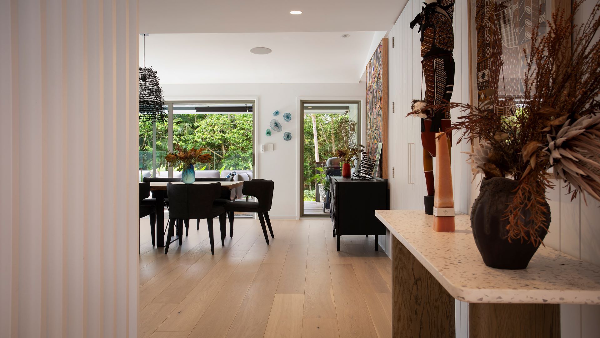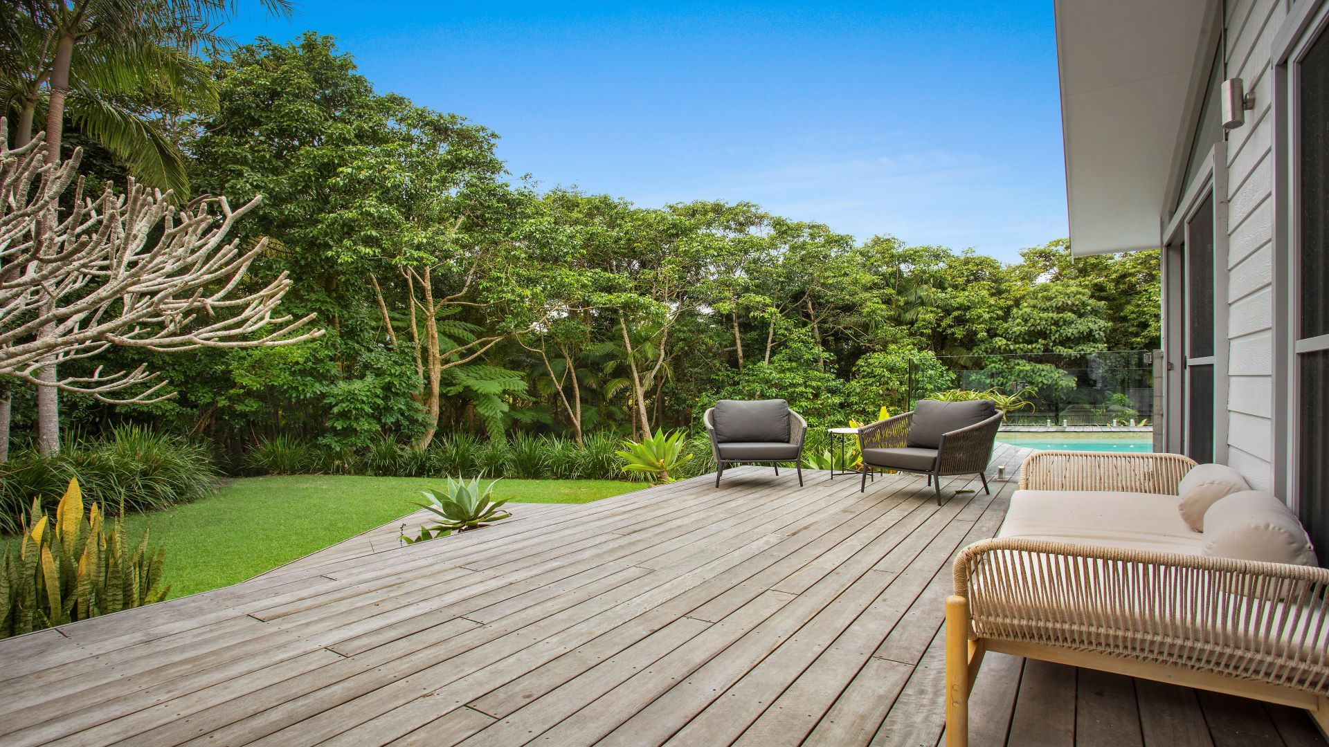 Meticulously landscaped gardens and lush grassy spaces blend effortlessly with native bushland, providing ample room for everyone to explore and feel liberated. Wake to magnificent sunrise views from your king-sized Master bedroom perched above the rainforest canopy. Follow winding sandy paths to Tallow Beach for an invigorating morning swim or stroll to Broken Head, before returning to soak in an outdoor stone bath, enveloped in your own private sanctuary. It's the perfect way to while away the day.
